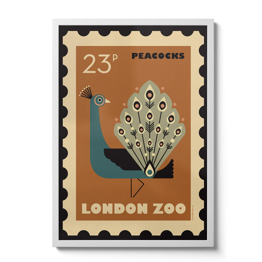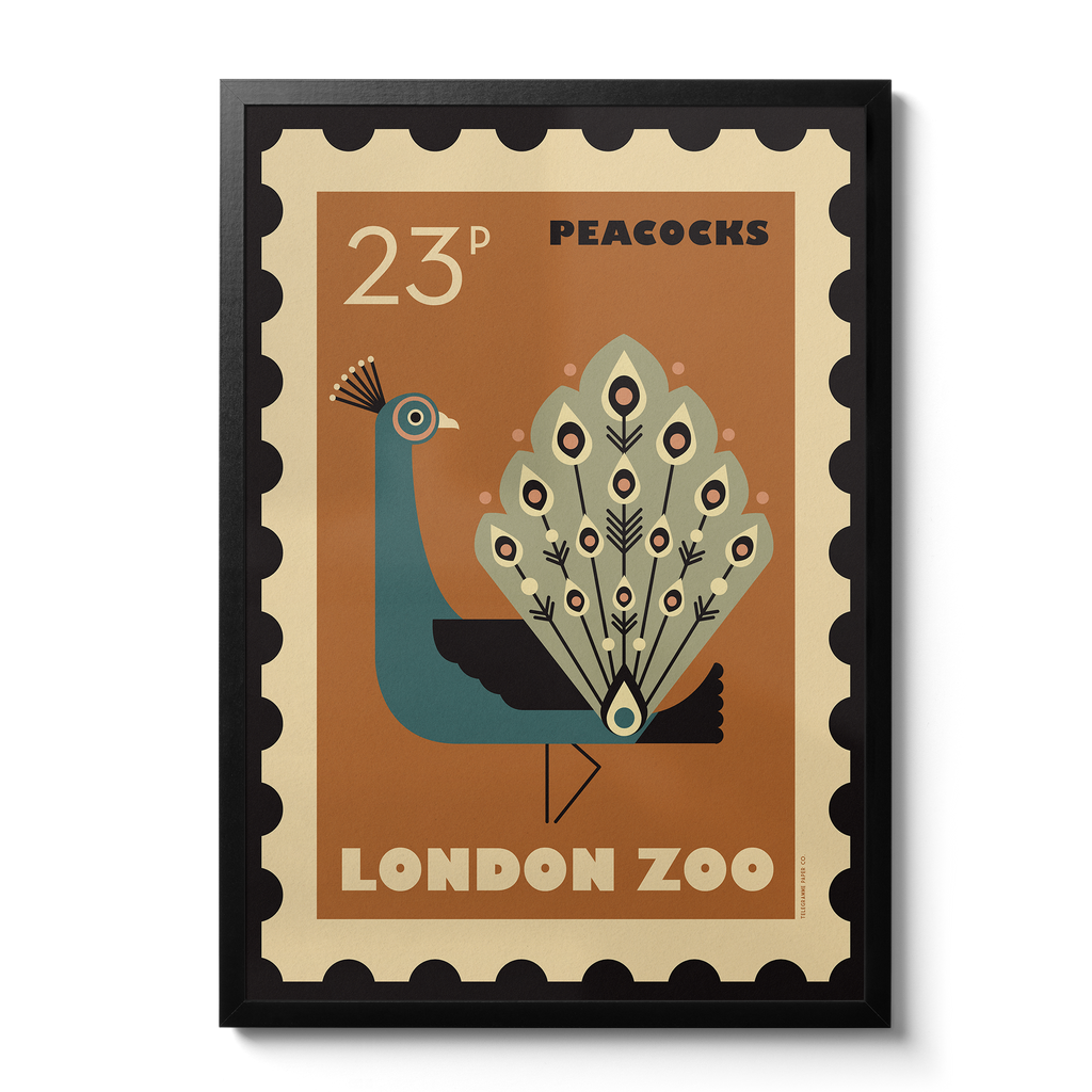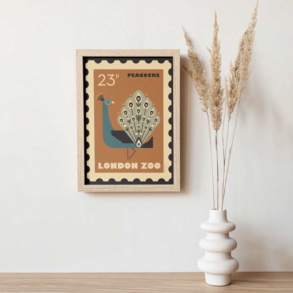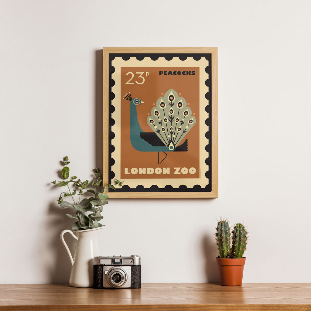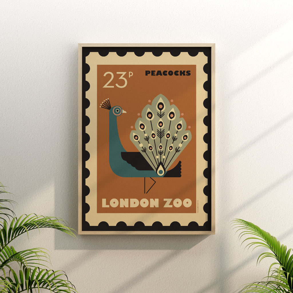 London Zoo Stamp collection print - Peacock
