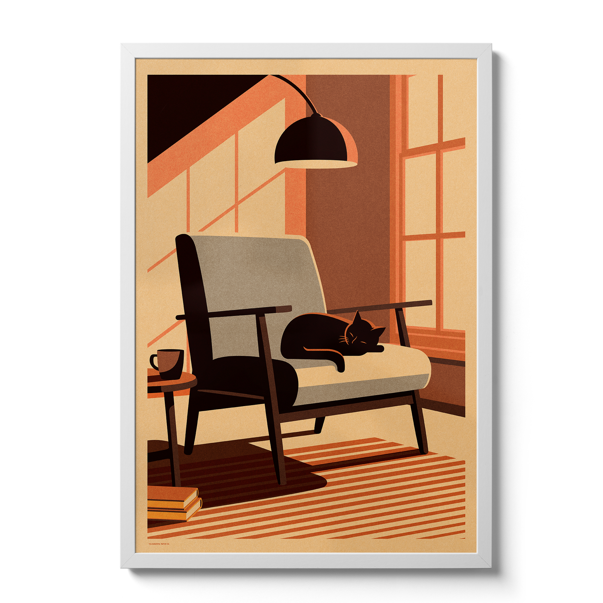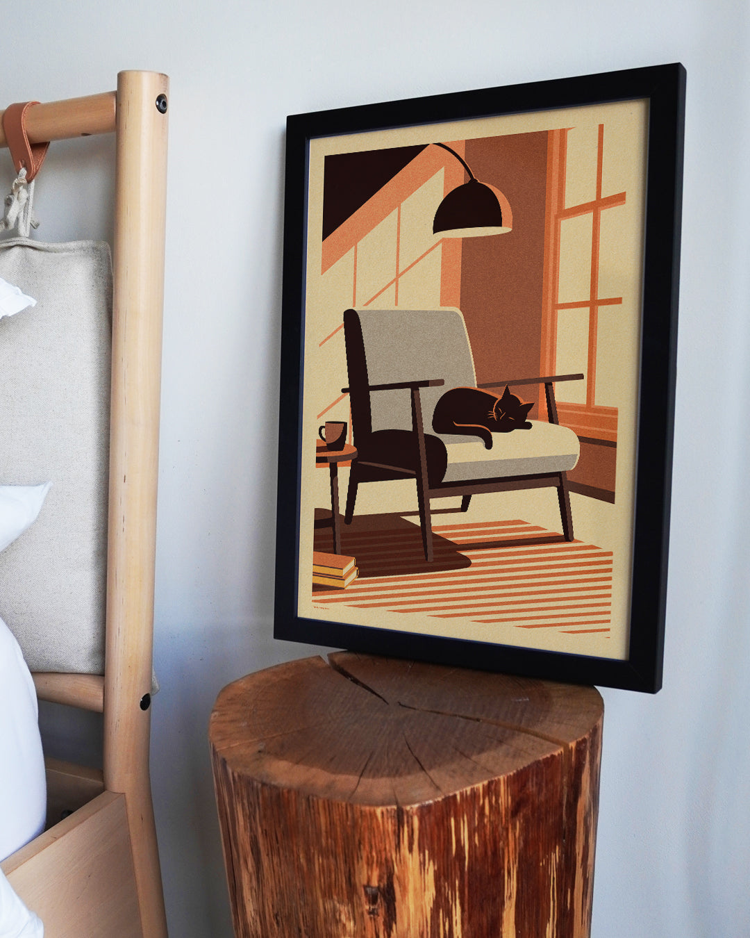 Our intergalactic furry friend is in need of a cat nap, and so this week's print is an autumnal snapshot of a calming and cosy moment enjoyed by our whiskered wanderer.