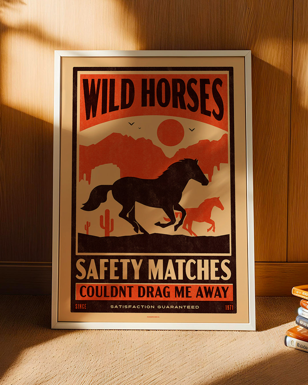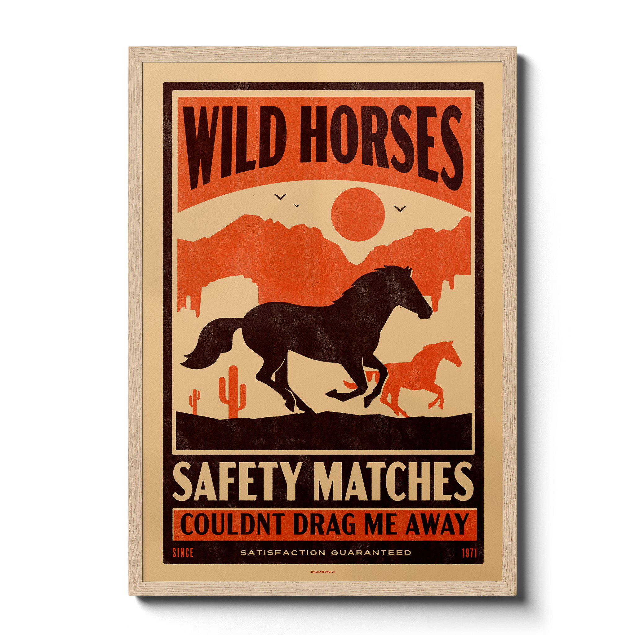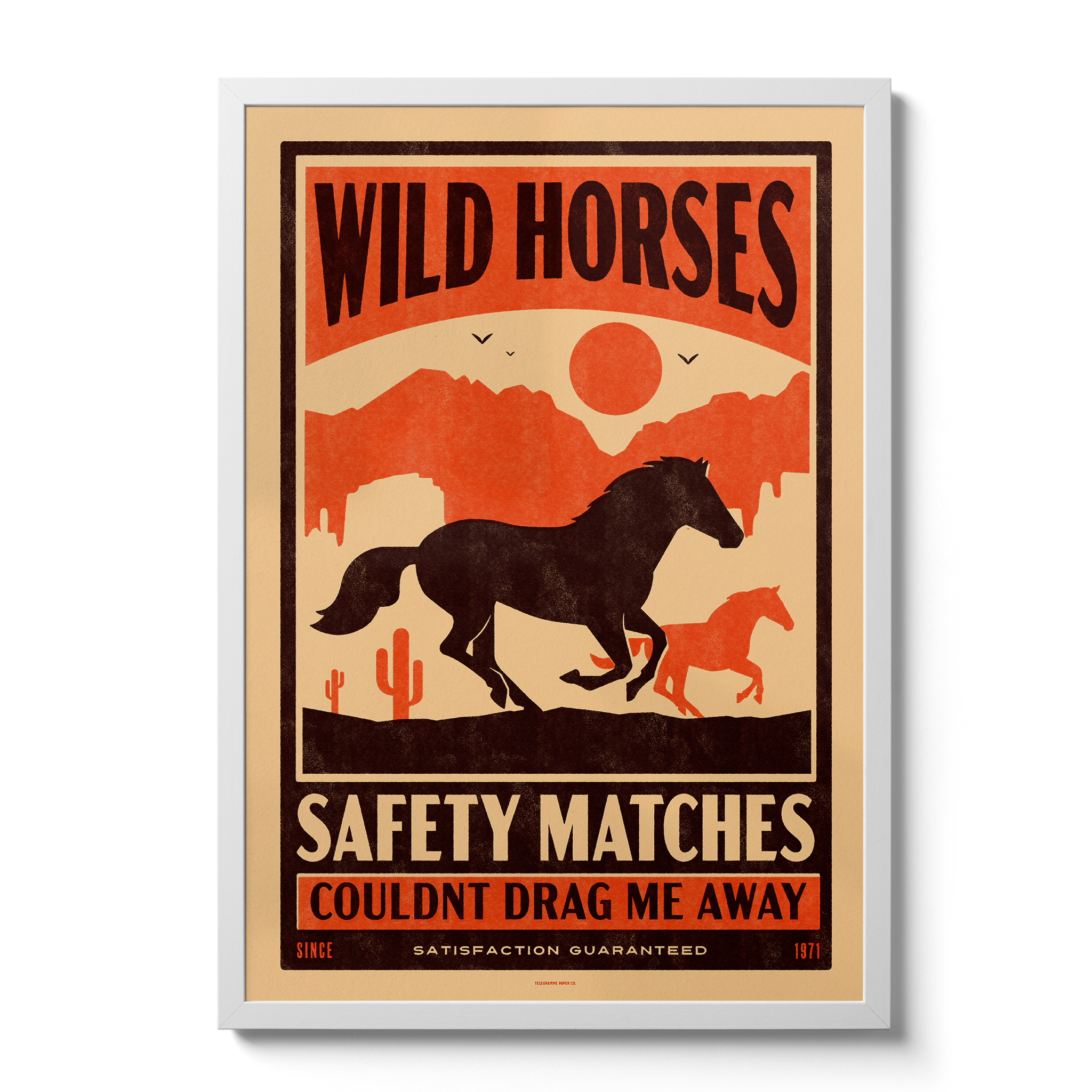 We began the designs with an element that we found consistent throughout vintage matchboxes - western design and in particular, horses. We love to add nods to our favourite things in our work also, so this week's prints are also inspired by two incredible and iconic songs. We wanted to use the lyrics of each song within the design and they are, not so subtly, used as the brand names, both of which we think are reminiscent of the time we're referencing.